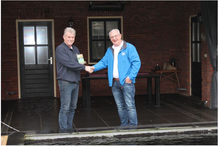 Voor ons een mooie gelegenheid de deelnemende Koi Shiro te bewonderen en te controleren. Daar hadden we geen twijfel bij want reeds eerder zette hij deze Shiro in en won. Maar toch we moeten de Koi wel in levende lijve aanschouwen bij de hobbyist. Dat was allemaal dik in orde, zoals verwacht.