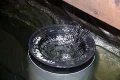 Sommige vijvers geven nooit schuim die van mij wel en ik heb het er liever uit, is goed voor de tds, toch? Toegeven het wint nooit de schoonheidsprijs, echter het doel heiligt de middelen. En het smerige drab wat er extra uitkomt in het kleine emmertje komt niet in mijn vijver terecht!