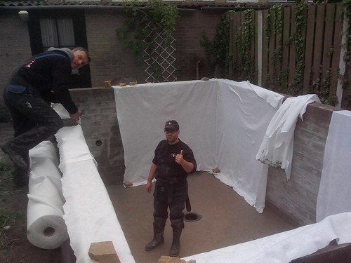 Erik: Zorg ervoor dat je goede research doet met betrekking tot de filterinstallatie die je voor ogen hebt en hoe deze te bouwen. Ik heb mijn vijver oplaten metselen omdat er in mijn ogen geen betere, stevigere methoden is dan een gemetselde vijver. Bij mij hebben ze gebruik gemaakt van betonblokken van L x B x H 30 x 20 x 10 gemetseld in de platte weg.