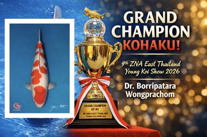 Op 17 januari 2026 vond in Thailand de 9th ZNA East Thailand Young Koi Show plaats, een toonaangevende regionale competitie onder de vlag van de Japanse koivereniging ZNA, gericht op jonge vissen. In de categorie tot 65 cm, een klasse die exclusief gericht is op jongere, veelbelovende Koi ging de prestigieuze titel Grand Champion 65 BU naar een uitzonderlijke Kohaku van Dr. Borripatara Wongprachom.