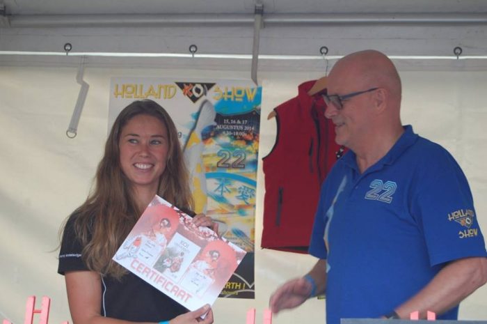 In actie tijdens de Koi UniversityUiteindelijk kregen we halverwege juni de uitslag van het examen. Tot mijn grote blijdschap was ik geslaagd en wel op het hoogste niveau, namelijk niveau A! Mijn certificaat heb ik ontvangen op de BKS in Bokrijk, uit handen van Ad Jacobs. Ik heb er nog even over gegrapt dat ik toch wel een herexamen wil doen om ook het predicaat cum laude te behalen, maar ik ben toch wel zeer tevreden met het behaalde resultaat.