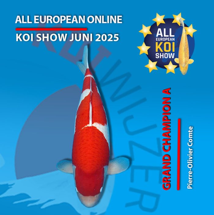 In een digitaal tijdperk waarin koi shows steeds innovatiever worden, heeft de Online European Koi Show 2025 een mijlpaal bereikt. De Grand Champion-titel ging naar “Amazing Boy”, een mannelijke Kohaku van maar liefst 82 cm, afkomstig van de gerenommeerde Dainichi Koi Farm. Deze Gosai-koi, eigendom van Pierre-Olivier Comte, stal de show met zijn overweldigende verschijning en werd bekroond volgens de nieuwe APKI-richtlijnen.
