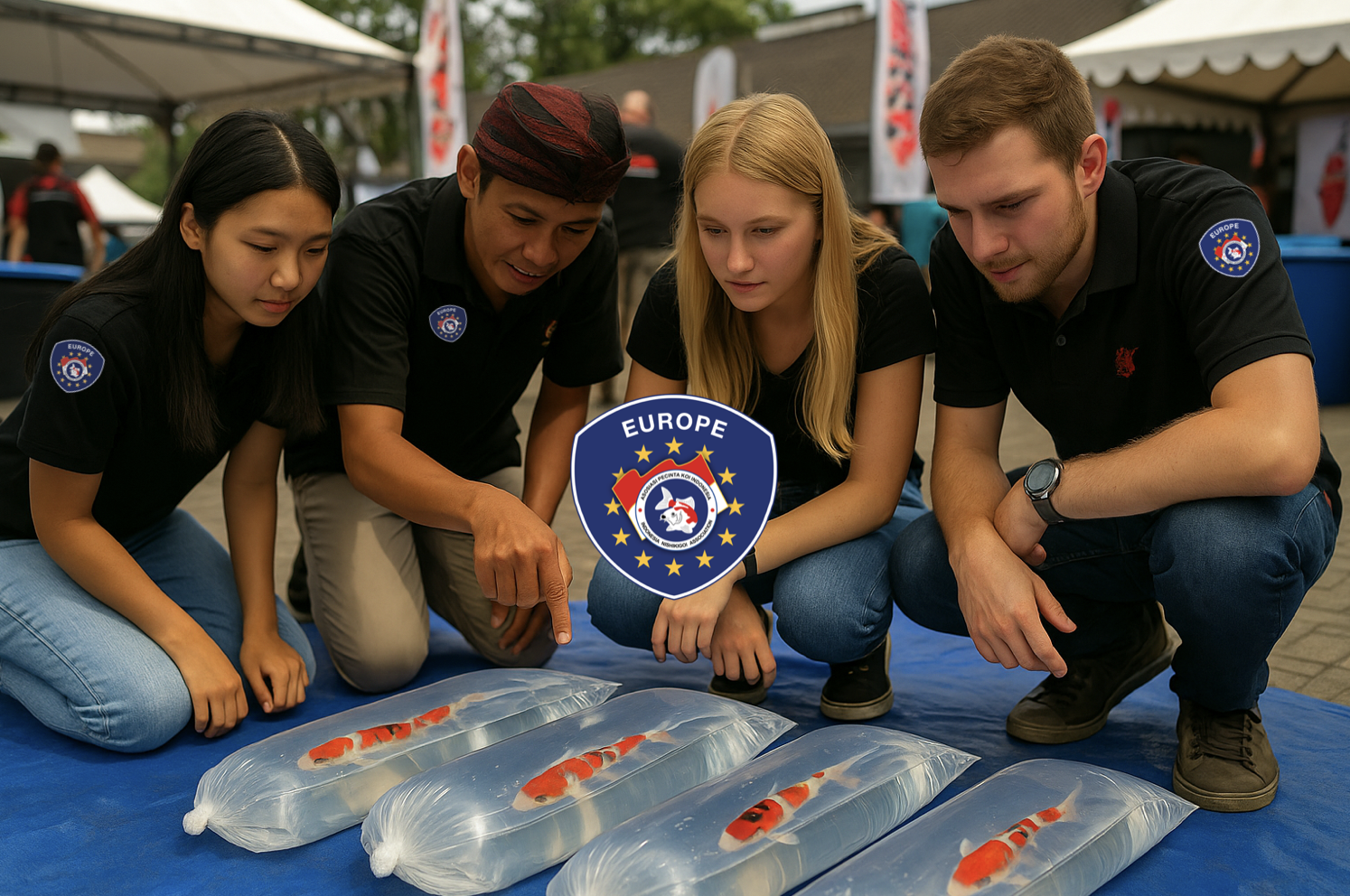 Elemen lain yang dibawa APKI dari Indonesia adalah menilai koi di dalam kantong – secara harfiah. Ikan-ikan ditempatkan dalam kantong transparan khusus di atas meja atau lantai gym, dikelompokkan berdasarkan jenisnya, dengan pendingin ruangan sebagai latar belakang. Cepat, tertib, aman… dan bagi sebagian orang di Belanda, “tidak biasa”.