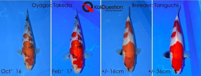 Vorig jaar verscheen er een blog over de nieuwe ouderdieren van Taniguchi Koifarm. Ik heb destijds beloofd dat ik jullie op de hoogte zou houden van de ontwikkelingen. En die zijn er! Het gaat om de nakomelingen van de Takeda Showa; het moederdier dat je hieronder afgebeeld ziet. Geen onlogische keuze, daar ook kwekers als de Takashi Koi farm en ook Momotaro in de Mako-lijn deze stabiele en goede Showa ingekruist hebben om hun doelen te verwezenlijken. Dat was echter al zo’n 10 jaar geleden.