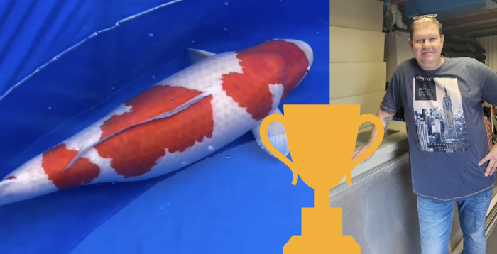 Met een NND Kohaku (Niigata Nishikigoi Direct), hetgeen een samenwerkingsverband is van enkele kwekers, wint Patrick Makkes een plaats op het hoogste podium in de geschiedenisboeken. Wat een eer moet dat zijn. Ongetwijfeld dat wij hem wat vragen stelden over deze prestatie, maar niet zonder eerst de Kohaku te bewonderen die de hobbyist deze klinkende overwinning bracht!