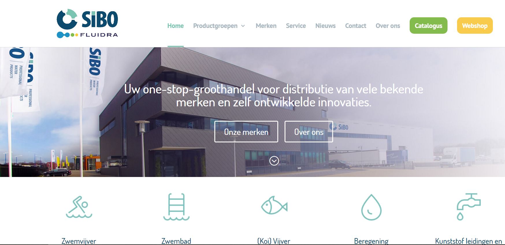 Uw one-stop groothandel voor de distributie van vele bekende merken en zelf ontwikkelde innovaties. Zo presenteert SIBO Fluidra Netherlands zich op haar nieuwe website. Op www.sibo.nl vindt u op een overzichtelijke manier wat SIBO Fluidra u, als klant, te bieden heeft. Zo wordt er meer informatie gegeven over de verschillende productgroepen en merken en kunt u voor meer specifieke productinformatie terecht in de online catalogus en webshop.
